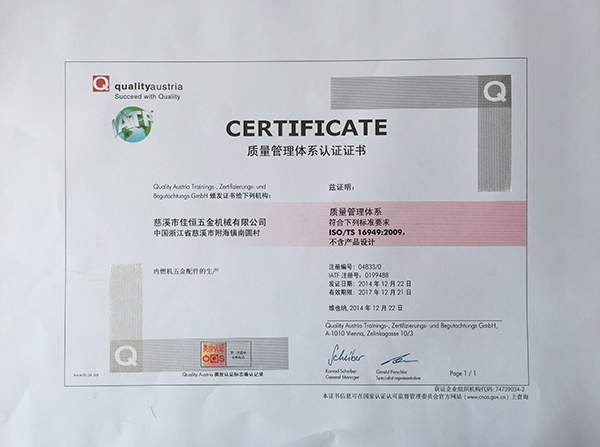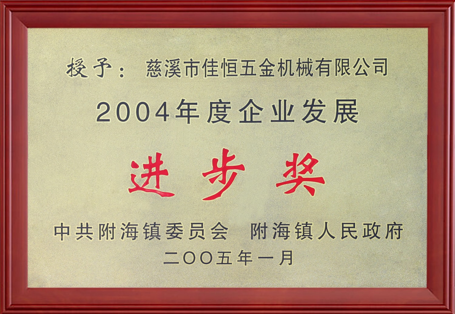 慈溪市佳恒五金機械有限公司是一家專業生產汽車零部件的企業,其前身是"慈溪市佳澤五金配件廠" , 2003年改名為:"慈溪市佳恒五金機械有限公司"。